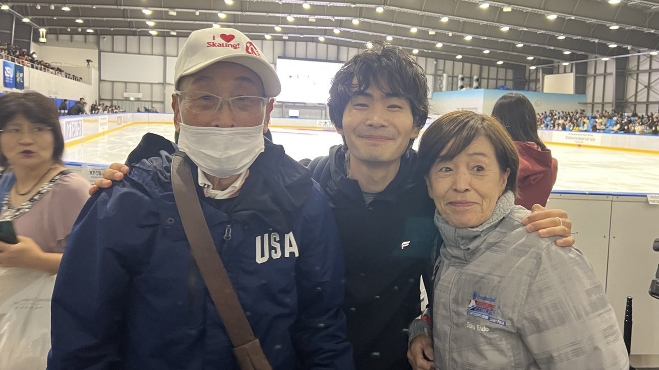 Above: Goku Endo with his grandparents at the Challenger Series event in Japan. Goku competed at the event and his grandparents watched him skate in person for the first time.