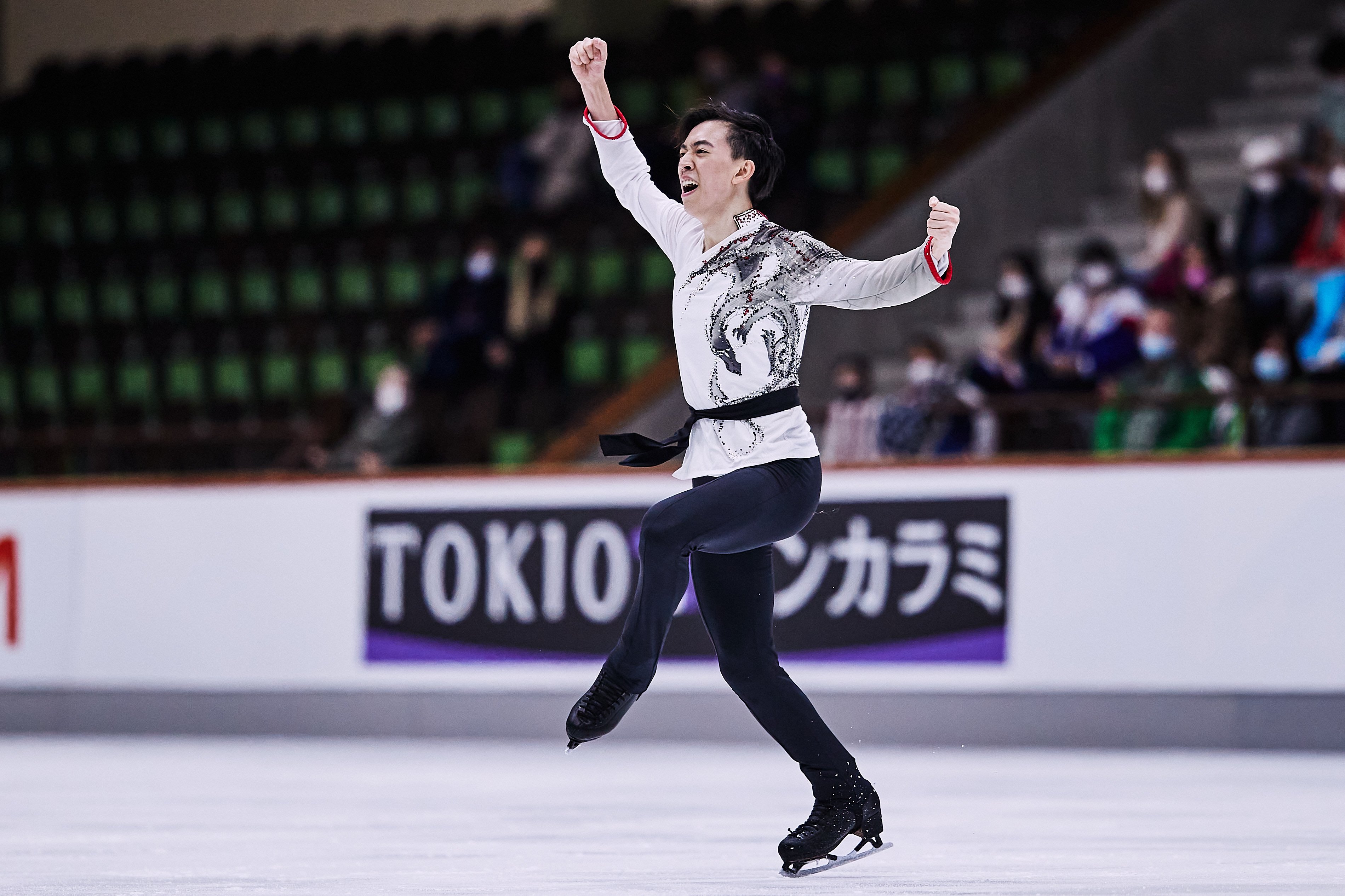 Zhou entered the free skate in first place, winning the short program with a 97.35-point performance that included a quadruple Lutz-triple toe loop combination and a quadruple Salchow. The 2019 World bronze medalist went on to win the free skate and the competition with a total score of 284.23 points, clearing the field by over 40 points. His 186.88-point free skate to music from Crouching Tiger, Hidden Dragon featured four quadruple jumps.